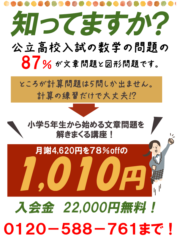 お気軽にお問い合わせください。0120-588-761受付時間 9:30-20:00 [ 土・日・祝日除く ]