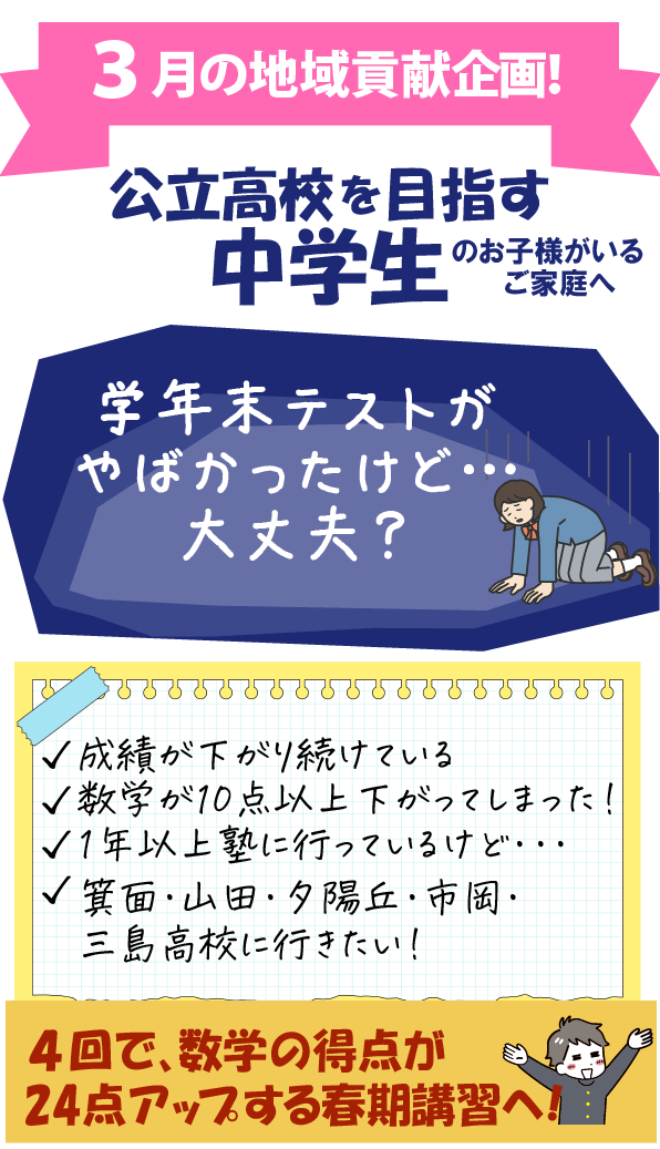 「勉強してるのに点数が上がらない」そんな悩みを抱える生徒が、ユニバ進学教室に通って28日で24点アップを達成。変わったのは“勉強時間”ではなく、“勉強のやり方”でした。今のやり方に不安がある方、ぜひ一度ご相談ください。